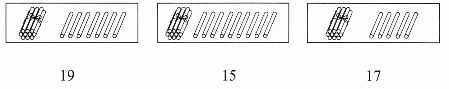 【解析】1 捆是 10 根,1 捆后面有几根就是几根。