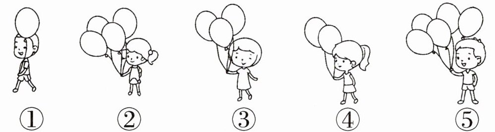 (1)有4个气球的是( )号小朋友,她左边的小朋友有( )个气球。