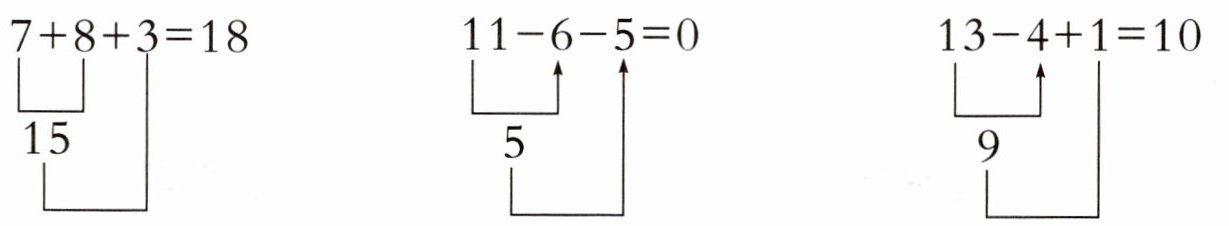$7 + 8 + 3 = 18$ $11 - 6 - 5 = 0$ $13 - 4 + 1 = 10$