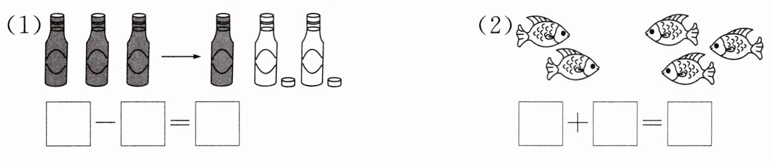 【解析】 (1)可以假设等号左边的两个数相加的和是5,要使这个等式成立,等号右边的两个数相加的和也应该是5。答案不唯一。(2)先算等号左边的算式5-2= 3,再想4-1= 3,里就填1。