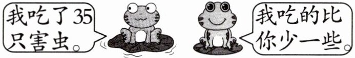 【解析】 左边的青蛙吃了35只害虫,右边的青蛙吃的害虫比它吃的少一些,也就是比35少一些,在10,30,15这三个数中,只有30比35少一些,而其他两个数都要比35少得多。