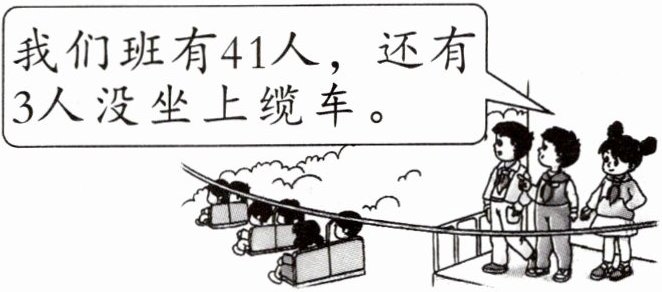 【答案】 41 - 3 = 38(人) 答:坐上缆车的有38人。