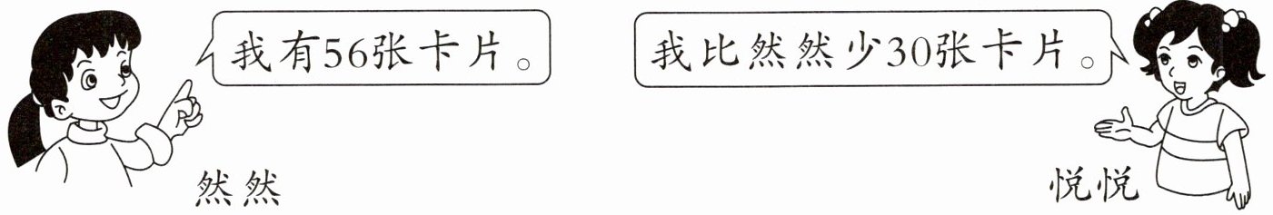 【解析】 求悦悦有多少张卡片,由题可知,悦悦比然然少30张卡片,求比一个数少几的数是多少,用减法计算。