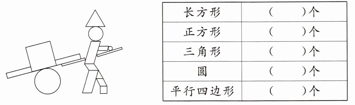 二、把每种图形涂上相同的颜色,再数出各有几个。(15分)