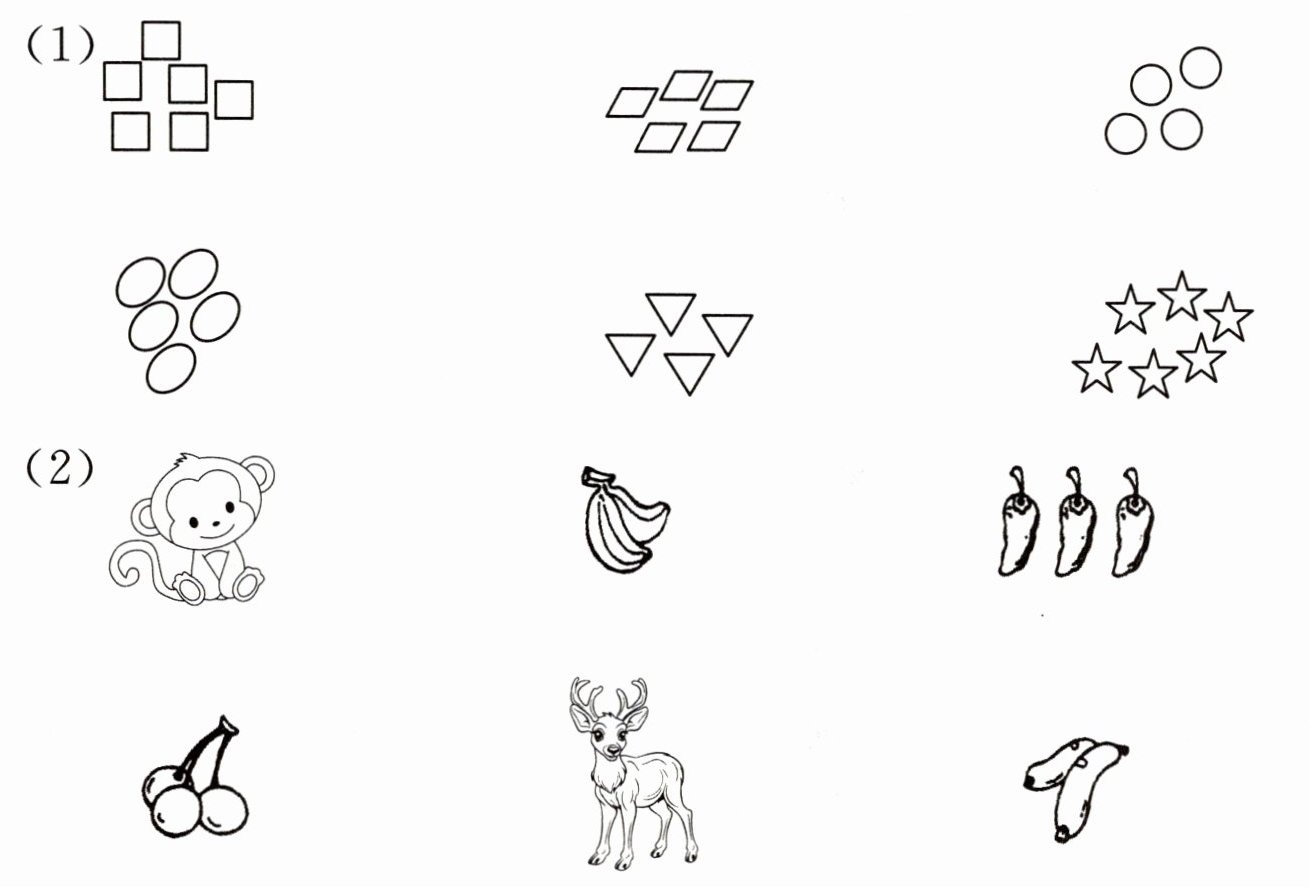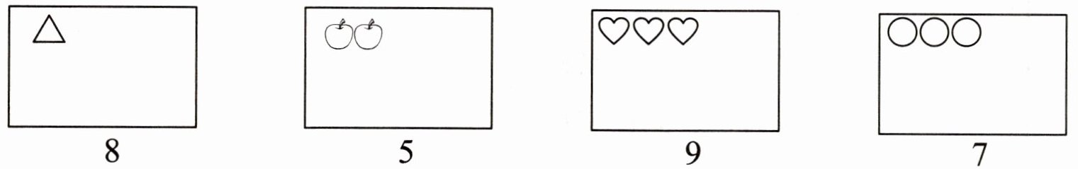 2. 你能在每幅图下面的方框中用“○”表示相应的个数吗?
