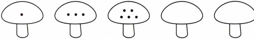【解析】先仔细观察图片,找出规律。数一数,前三个小蘑菇上各有几个小圆圈,分别是1个、3个、5个,1和3中间缺2,3和5中间缺4,因此可以发现,相邻两个小蘑菇上的圆圈数是隔了一个数的,因此第4个小蘑菇上的圆圈个数是7,第5个小蘑菇上的圆圈个数是9。