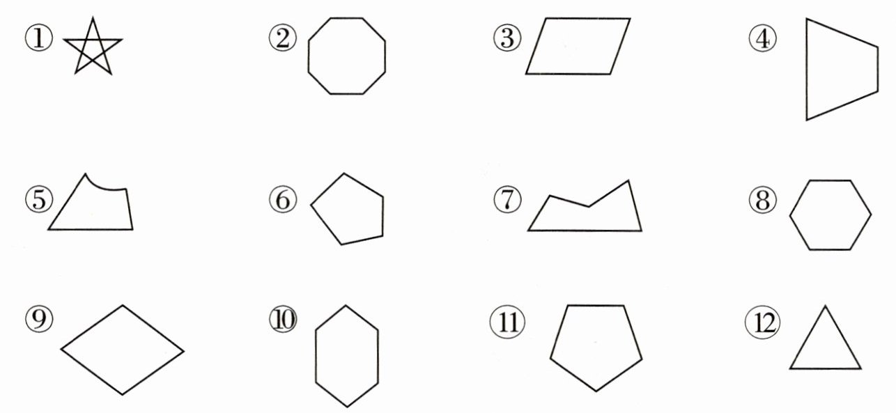 三、先观察图形,再把序号填在相应的横线上。(12分)