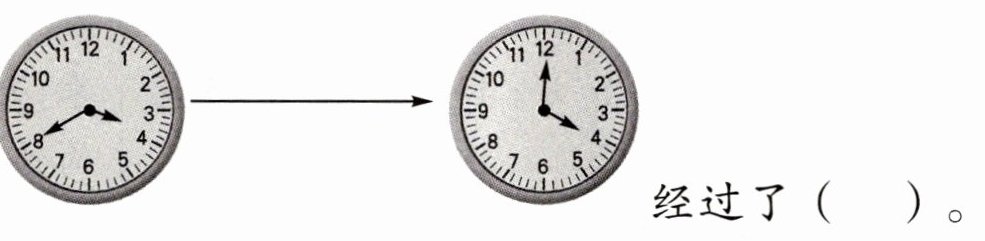 【解析】第一个钟表的时间是 3 时 40 分,第二个钟表的时间是 4 时,即分针从 8 走到了 12,经过了 4 个大格,也就是 4 个 5 分钟,经过了 20 分钟。