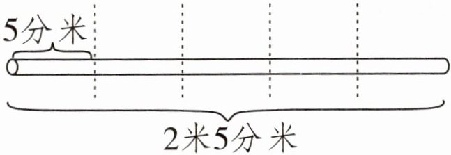 【解答】 2 米 5 分米 = 25 分米 $ 25 ÷ 5 = 5 $(段) $ 5 - 1 = 4 $(次)