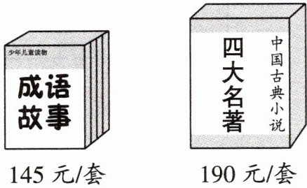 【解析】:本题考查整数的复合应用题,涉及单价、数量和总价的关系。首先需要明确《成语故事》和《四大名著》各自的单价,题目中通过插图给出《成语故事》145元/套,《四大名著》190元/套,各购进两套。先分别计算两种书的总价,再求和得到总花费,最后用付出的700元减去总花费,即可求出应找回的钱数。