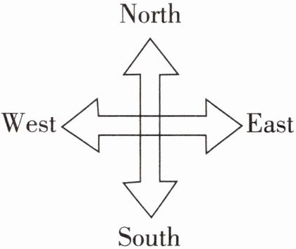 【答案】:图略(在方位图的北边方框内标注“small garden”,东边方框内标注“ice cream store”,西边方框内标注“bookstore”,南边方框内标注“my house”)