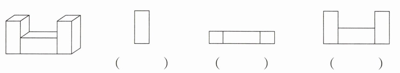 【解析】:该题考查四年级数学中观察物体的知识点,需要从前面、上面、左面三个不同方向观察立体图形,判断所看到的平面图形形状,并按要求标注符号。