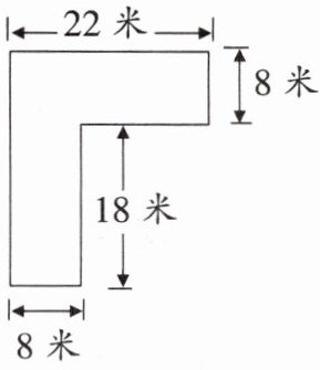 【解析】:题目考查不规则图形面积的计算,可采用分割法。观察图形,可将菜地分割成两个长方形。上面长方形的长为22米,宽为8米;下面长方形的宽为8米,长为18米。根据长方形面积公式$面积=长×宽$,分别计算两个长方形的面积再相加。上面长方形面积:$22×8 = 176$平方米;下面长方形面积:$18×8 = 144$平方米。总面积:$176 + 144 = 320$平方米。