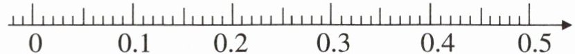 【解析】:本题考查小数的意义及小数大小比较。先根据直线上每小格代表的长度(0到0.1之间有10小格,每小格为0.01),在直线上找到各数对应的位置。比较大小时,先比较整数部分,整数部分相同再比较十分位,十分位相同比较百分位,依次类推。0.5和0.3,十分位5>3,所以0.5>0.3;0.13和0.18,十分位相同,百分位3<8,所以0.13<0.18;0.43和0.34,十分位4>3,所以0.43>0.34。