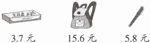 (1)题目考查小数乘法的应用。已知一个文具盒3.7元,求3个文具盒的总价,用单价×数量=总价,即3.7×3。