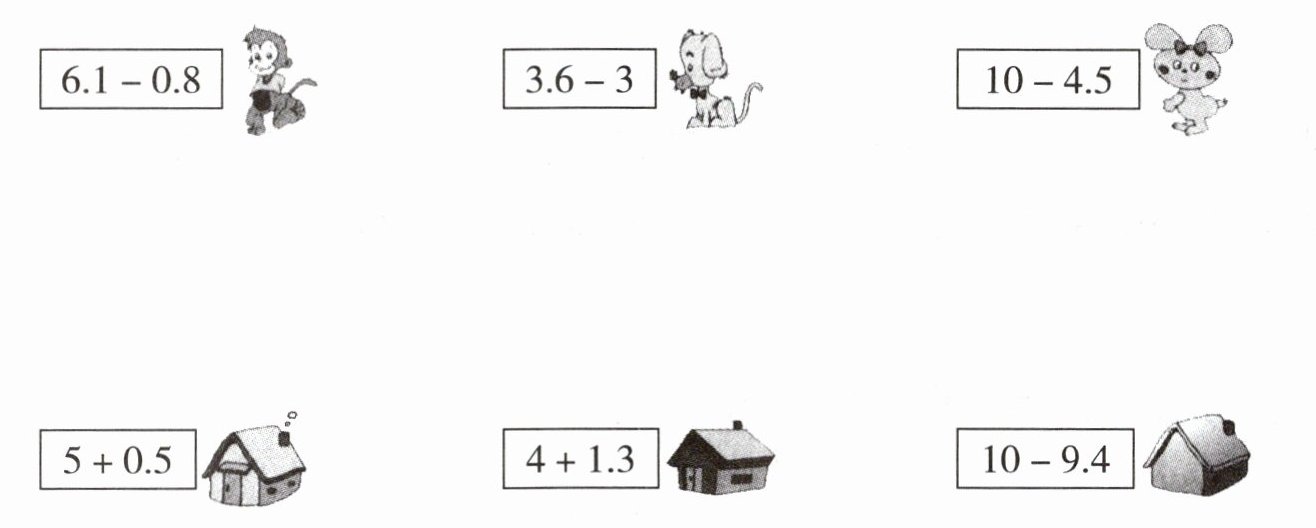 【解析】:本题考查四年级小数的加减法计算。先分别算出每个算式的结果,再将小动物与对应的“家”(算式结果)相连。计算过程如下: