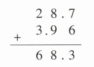 【解析】:本题考查小数的加减法运算。计算时,需将小数点对齐,从最低位算起,加法满十向前一位进一,减法不够减向前一位借一当十。