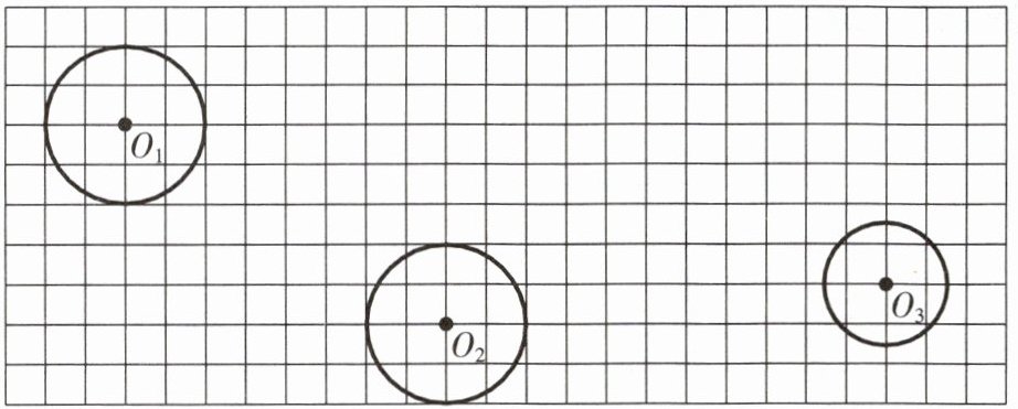 2. 对于圆$O_3$的平移,同样以圆心$O_3$为关键点,向左平移$3$格,即圆心的列数减$3$,再向上平移$5$格,即圆心的行数加$5$,然后以新的圆心位置为中心,画出与原圆大小相同的圆。
