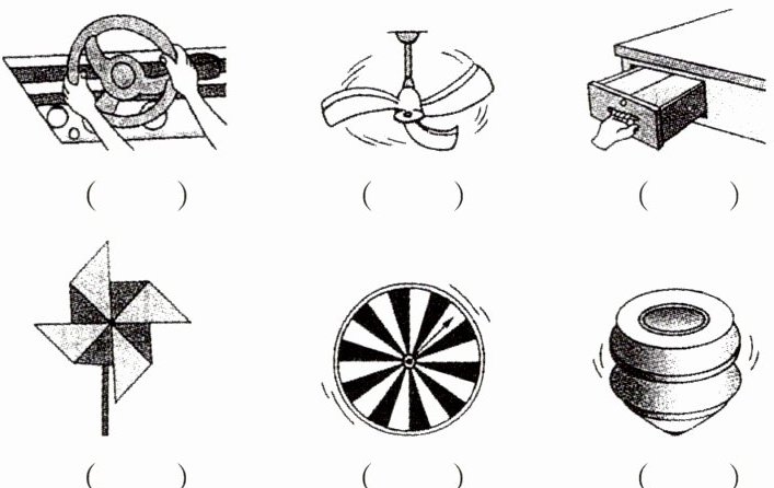 3. 下面物体的运动是平移的画“$\triangle$”,是旋转的画“$○$”。