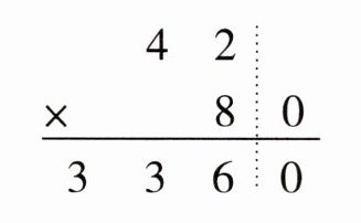 $\begin{array}{r} 42\\ ×\;\;\;80\\ \hline 3360\end{array}$