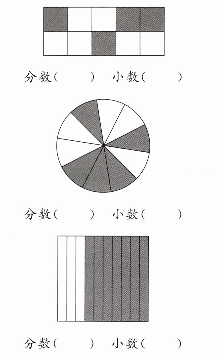 1. 分别用分数和小数表示下面各图中的阴影部分。