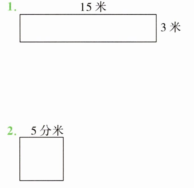 1. 周长:(15+3)×2=36(米) 面积:15×3=45(平方米)