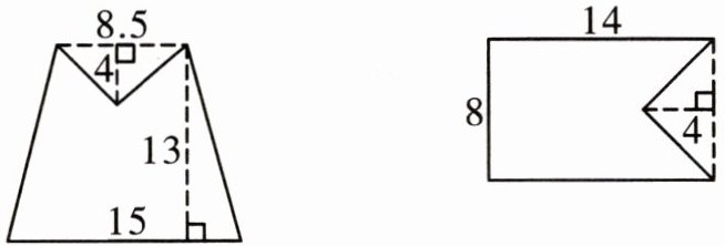 (8.5+15)×13÷2-8.5×4÷2=135.75(平方厘米) 14×8-8×4÷2=96(平方厘米)