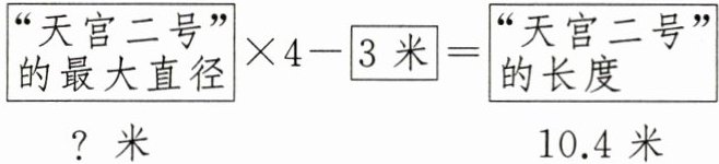 【解析】根据关键句“‘天宫二号’的长度比它最大直径的 4 倍少 3 米”,想到等量关系式:
