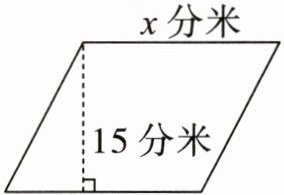 平行四边形的面积公式为$底×高$,已知面积是$270$平方分米,高是$15$分米,底是$x$分米,所以可列出方程$15x = 270$,再根据等式的性质,等式两边同时除以$15$来求解$x$。