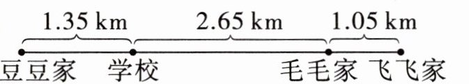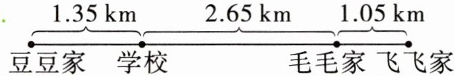 (3)豆豆从家出发去飞飞家,她一共要走多少千米?