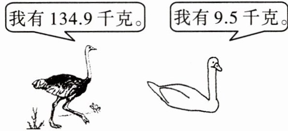 7. 鸵鸟是世界上最大的鸟,算一算,下图中鸵鸟的体重是天鹅的多少倍?