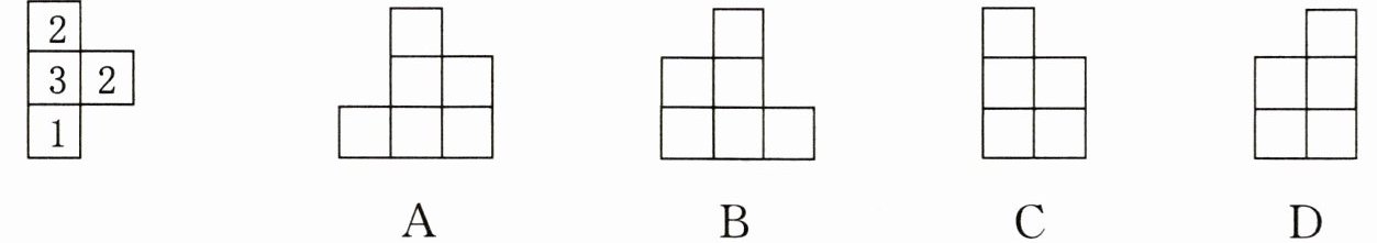 4. 用同样的小正方体搭一个几何体,从上面看到的图形如下左图(每个正方形上面的数字表示在这个位置上所用的小正方体的个数)。这个几何体,从前面看是