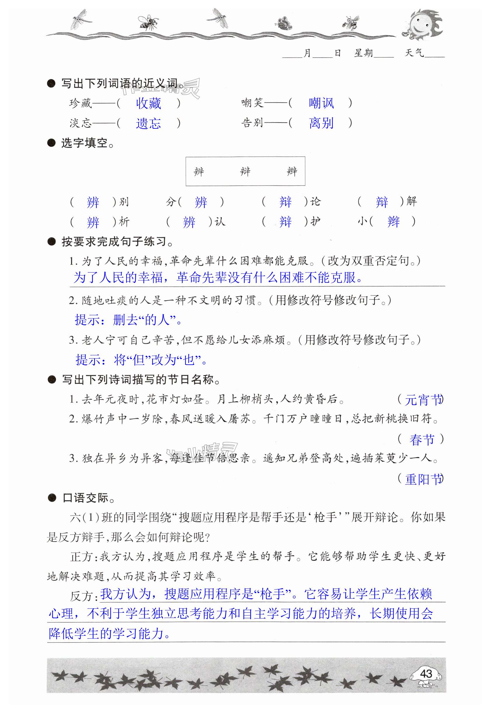注:目前有些书本章节名称可能整理的还不是很完善,但都是按照顺序排列的,请同学们按照顺序仔细查找。练习册 2025年暑假生活指导六年级六三制青岛出版社 答案主要是用来给同学们做完题方便对答案用的,请勿直接抄袭。