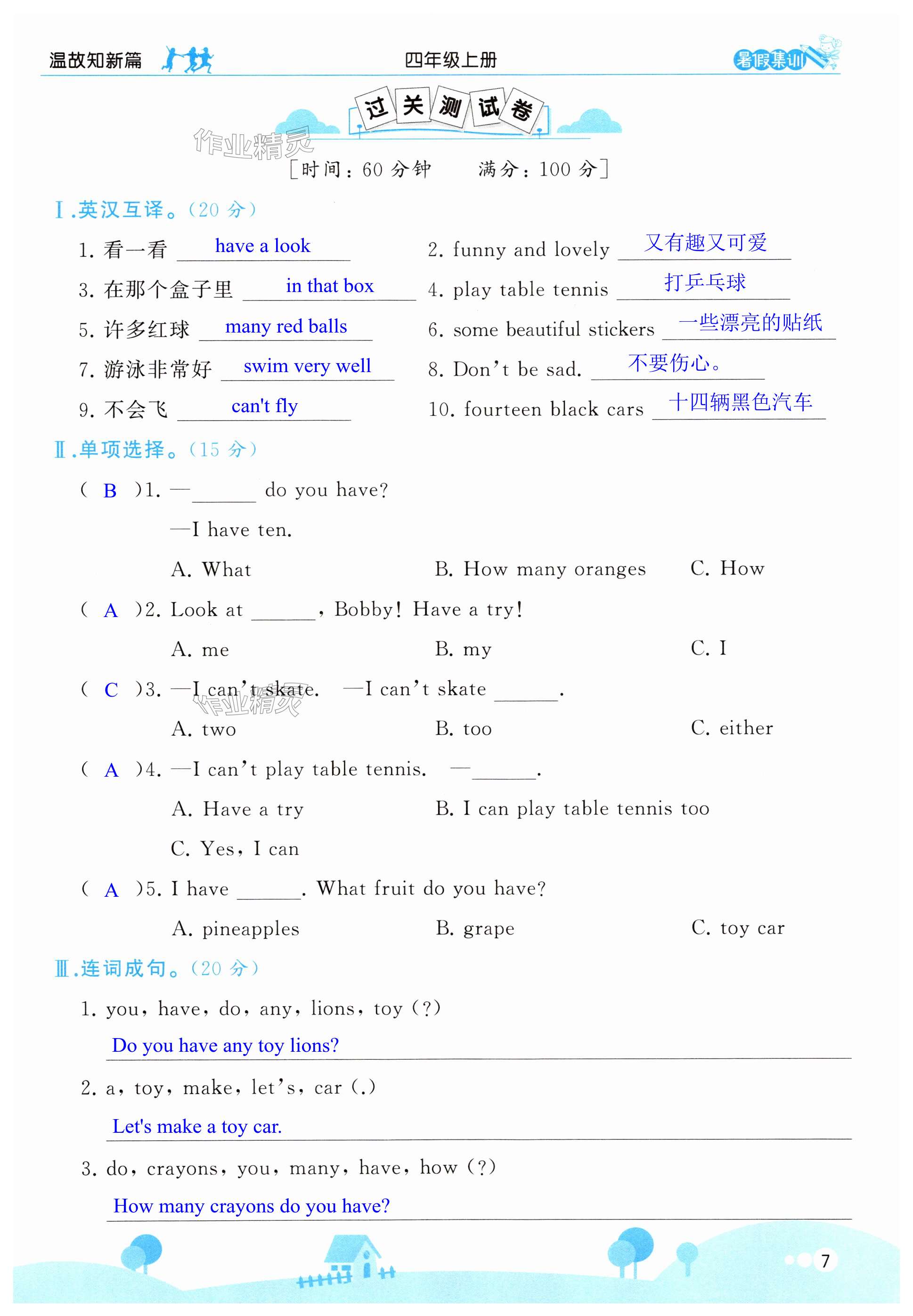 注:目前有些书本章节名称可能整理的还不是很完善,但都是按照顺序排列的,请同学们按照顺序仔细查找。练习册 2025年暑假集训合肥工业大学出版社四年级英语译林版 答案主要是用来给同学们做完题方便对答案用的,请勿直接抄袭。