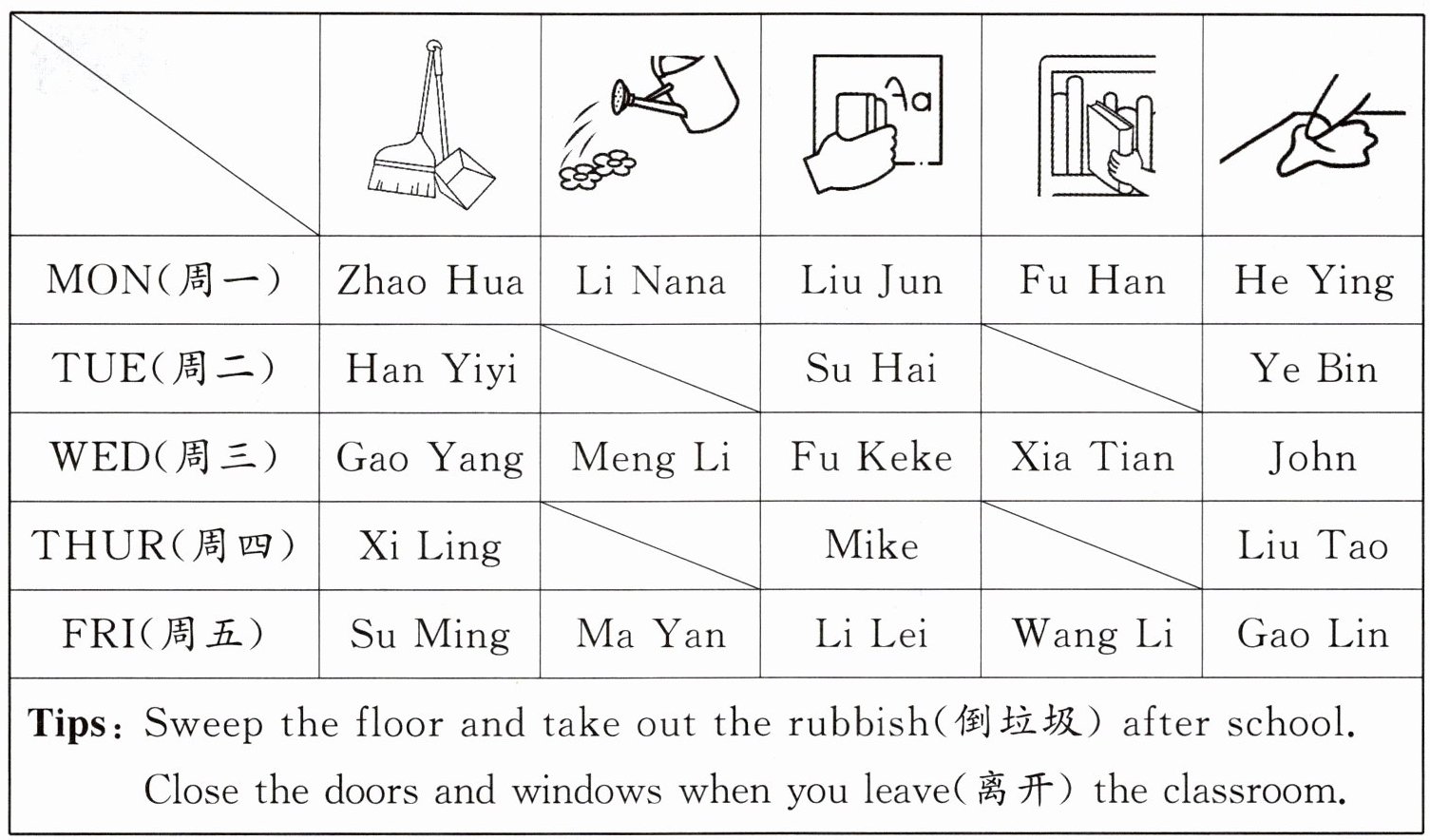 Ⅵ.阅读表格,选择正确的答案。(20分)
