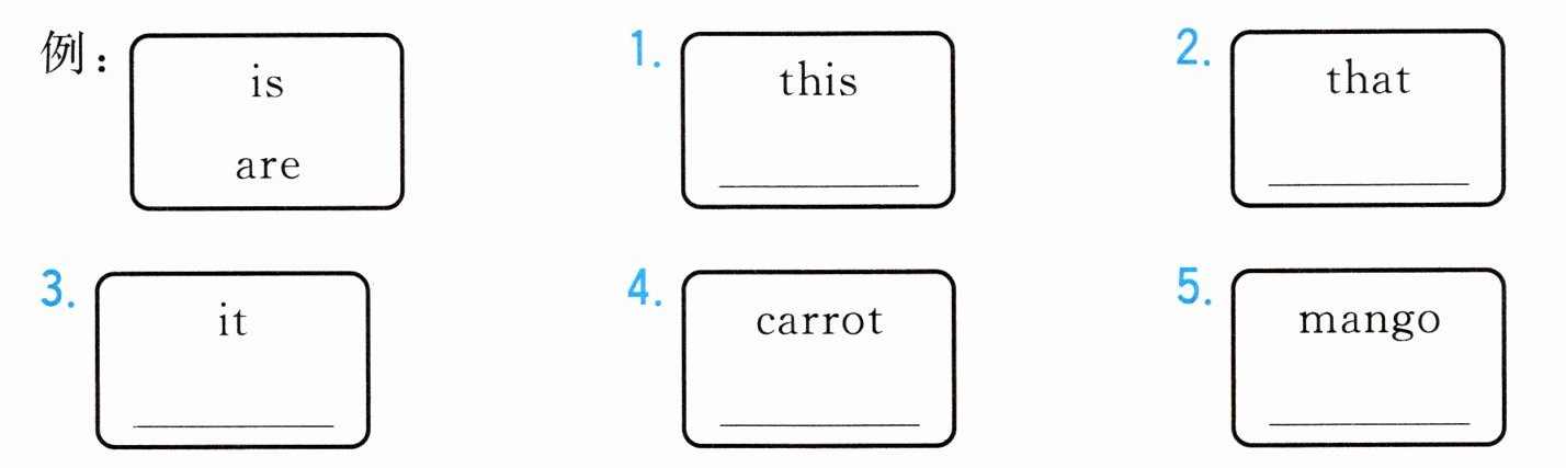 1. these 2. those 3. they 4. carrots 5. mangoes