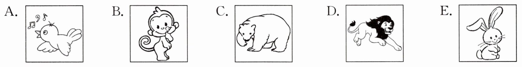 1. bear 2. lion 3. monkey 4. rabbit 5. bird
