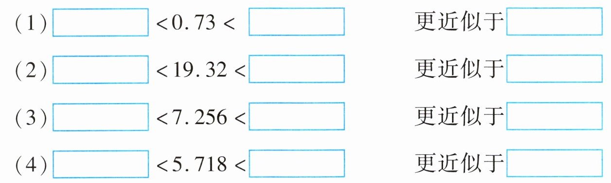 2. 下面每个小数各在哪两个相邻的一位小数之间?它们各更近似于其中哪一个小数?