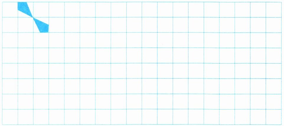 先将给定的蓝色图形绕着两部分的连接点顺时针旋转$90^{\circ}$,再向右平移$4$格;接着将原图形绕连接点顺时针旋转$180^{\circ}$,再向右平移$8$格;最后将原图形绕连接点顺时针旋转$270^{\circ}$,向右平移$12$格(答案不唯一,只要合理运用旋转和平移即可)。