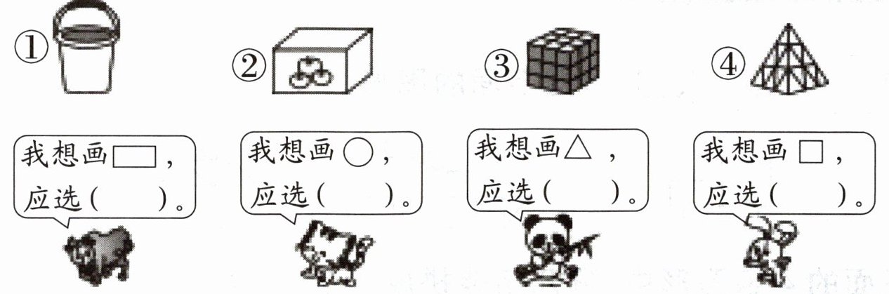 五、你能帮小动物们选出正确的物品吗?(填序号)