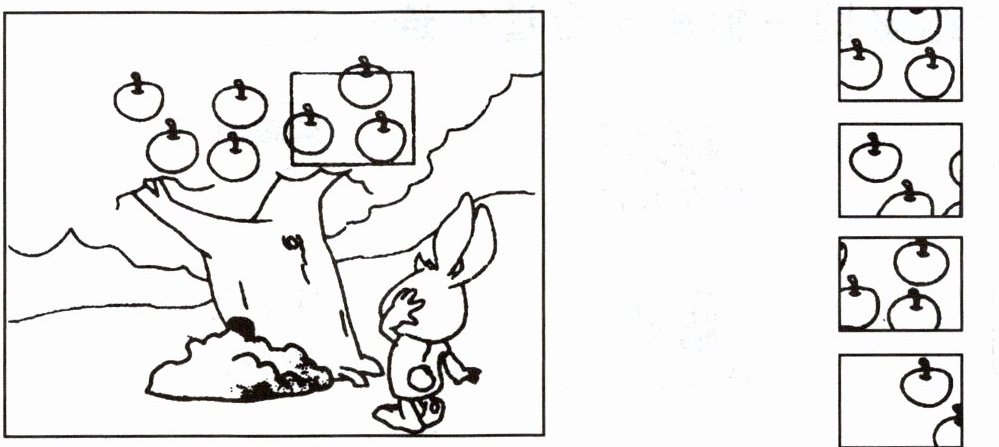 一、右边这四幅图中的哪一幅是树上的那部分?请帮小白兔圈出来