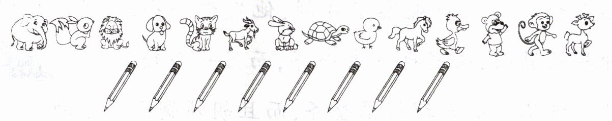 每只小动物分1支铅笔,还差几支?