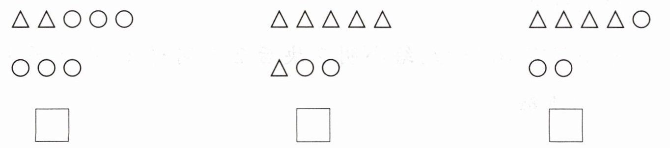 三、“○”表示1,“△”表示10,在最小的下面画“√”。
