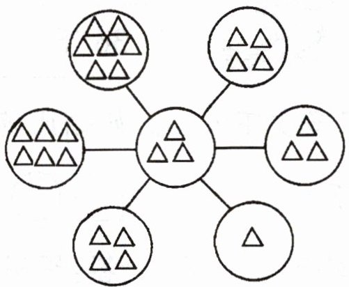 把左上角$○$(有$8$个$\triangle$)中的$1$个$\triangle$移到右下角$○$(有$1$个$\triangle$) 。