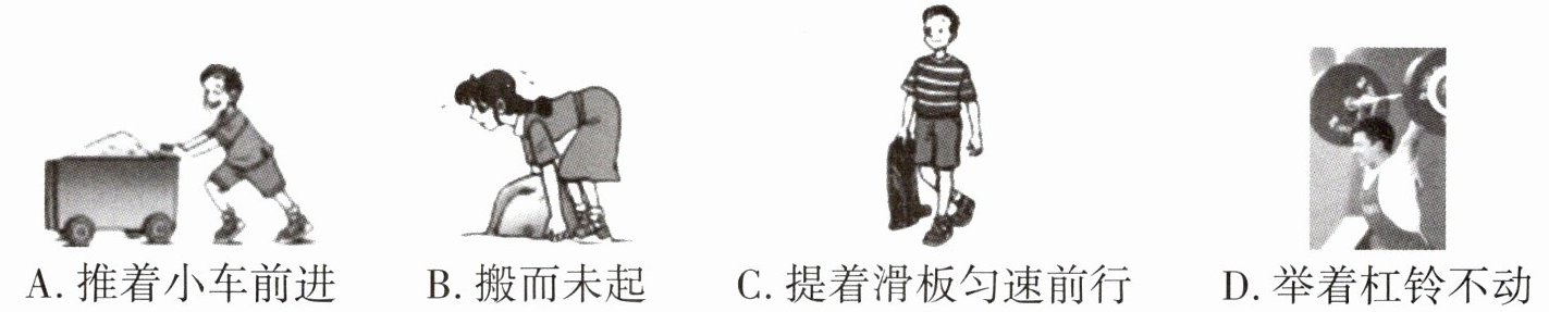 1. 下列如图所示的四种情况中,人对物体做功的是()