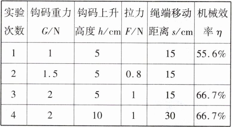10. 某小组测量如图所示滑轮组的机械效率,部分实验数据如下表。