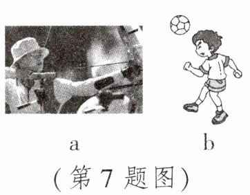 7. 如图a所示,运动员用力拉弓,弓弦发生弯曲,说明力可以使物体发生____;如图b所示,足球运动员用力将飞来的球顶出,足球的惯性____(选填“变大”“变小”或“不变”)。