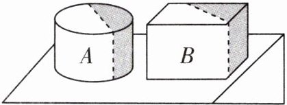 5. 如图所示,高度相同的均匀实心圆柱体 $ A $ 和正方体 $ B $ 放置在水平地面上, $ A $ 的直径等于 $ B $ 的棱长,它们对水平地面的压强相等。现分别将两物体沿图中虚线竖直切下底面积相等的部分,并将切下部分叠放在对方剩余部分的上方,此时它们对地面的压强变化量分别为 $ \Delta p'_A $、 $ \Delta p'_B $,则()