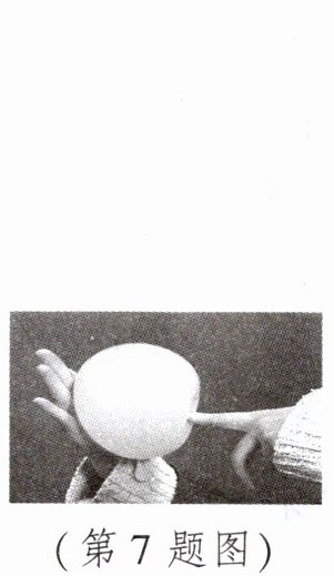 7. 如图所示,用左手掌压在气球上,右手的食指顶住气球,处于静止状态的气球发生了形变,则右手指对气球的压力______左手掌对气球的压力;右手指对气球的压强______左手掌对气球的压强。(均选填“<”“>”或“=”)