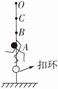 5. 如图所示的“反向蹦极”运动,弹性轻绳的上端固定在O点,绳子自然下垂的位置在BC之间的某点,绳子拉长后将下端固定在体验者的身上,并与固定在地面上的扣环相连。打开扣环,人从A点由静止释放,像火箭一样被“竖直发射”,经B点时人受到的重力和弹力相等,最高能到达C点。不计绳重与空气阻力,下列说法正确的是()